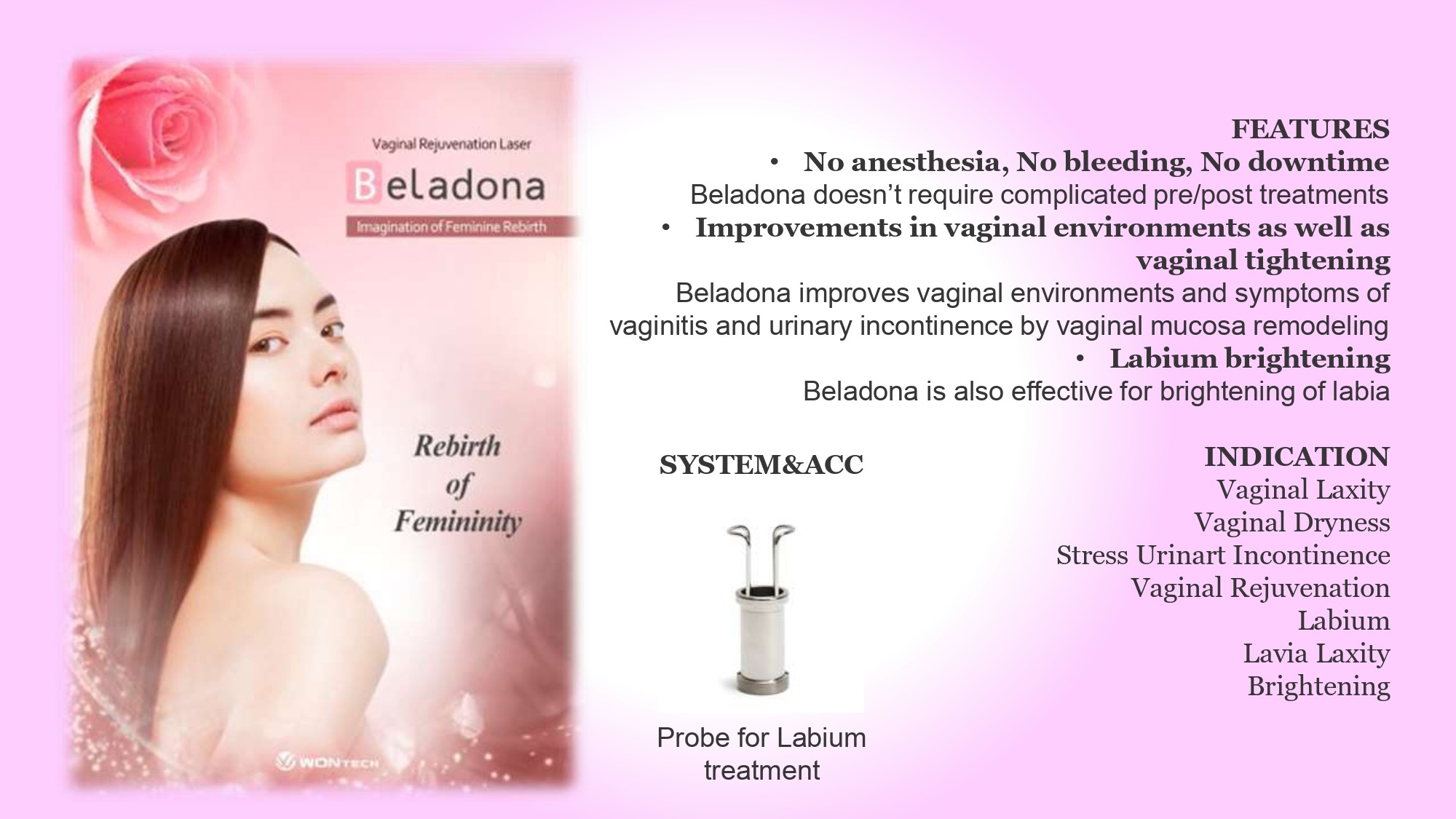 إن الميزات المتعددة التي يتمتع بها نظام Beladona الجديد من WONTECH تجعله عصرًا جديدًا في تجديد المهبل باستخدام ثاني أكسيد الكربون الجزئي.